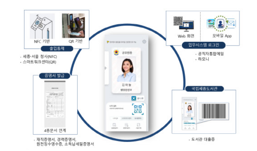 - 청사 출입: 대부분의 행정기관 청사는 모바일 공무원증으로 출입 인증이 가능하도록 시스템이 구축되어 있습니다.