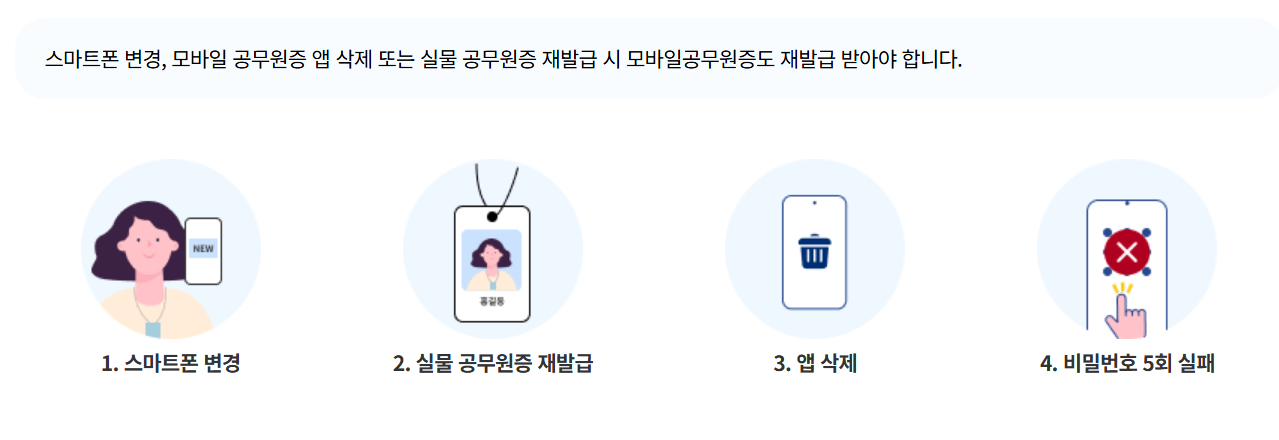 모바일 공무원증은 다음과 같은 상황에서 재발급이 필요합니다.